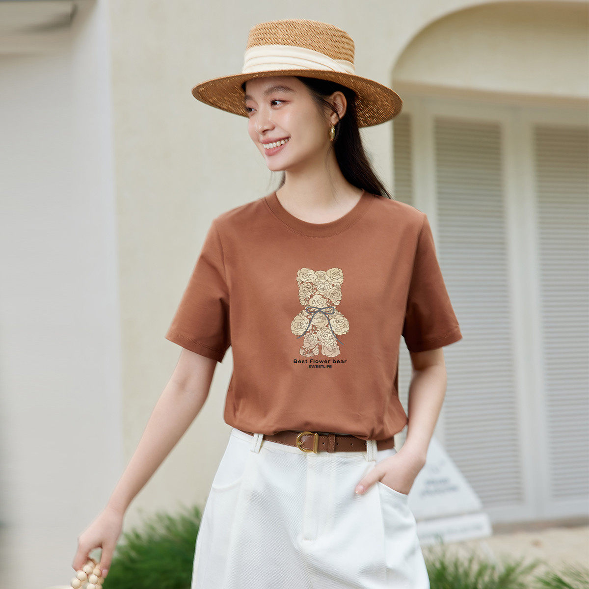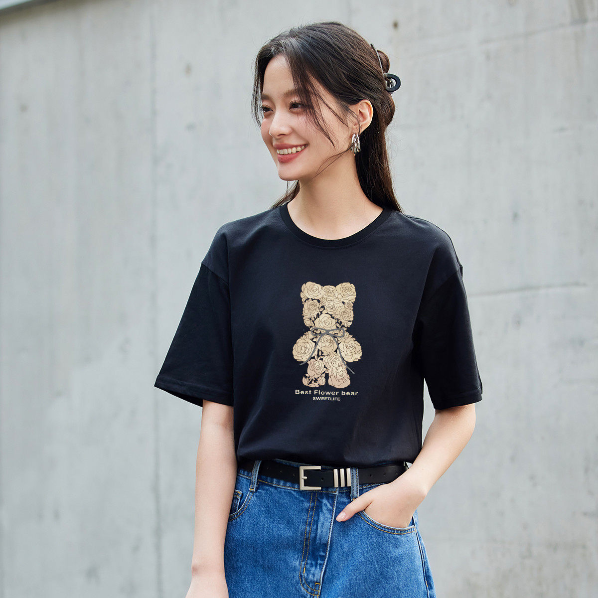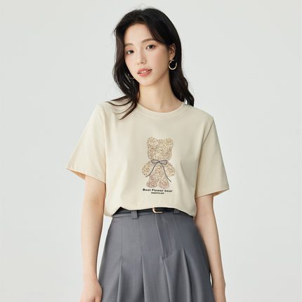 茵曼2026夏季新款正肩纯棉短袖T恤女士宽松独特超好看黑白色爆款