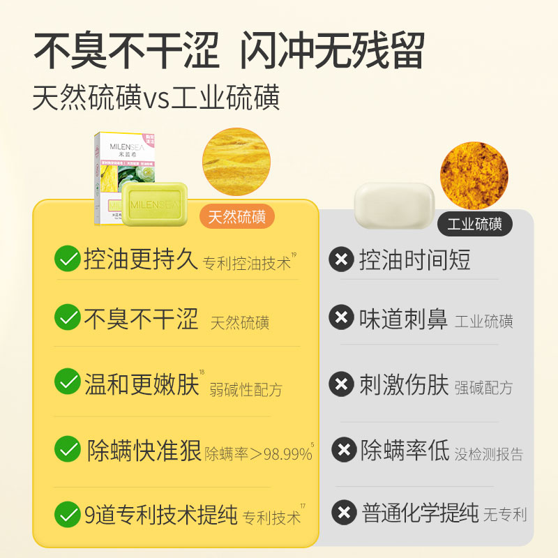 米蓝希茶树精油进口硫磺皂除螨抑菌祛痘深层清洁洗澡洗脸专用香皂