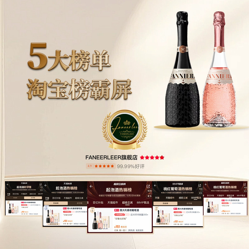 莫斯卡托起泡酒甜白桃红四代小白花葡萄酒气泡酒果酒女生礼物盒装