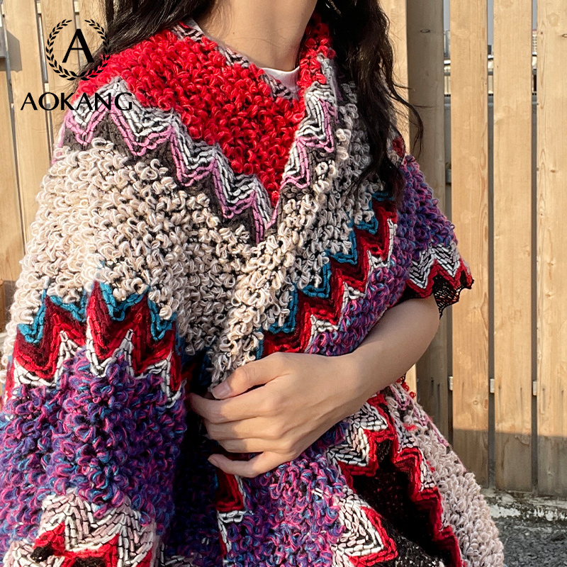 奥康披肩民族风2025新款外搭女围脖旅游户外穿搭时尚针织斗篷外套
