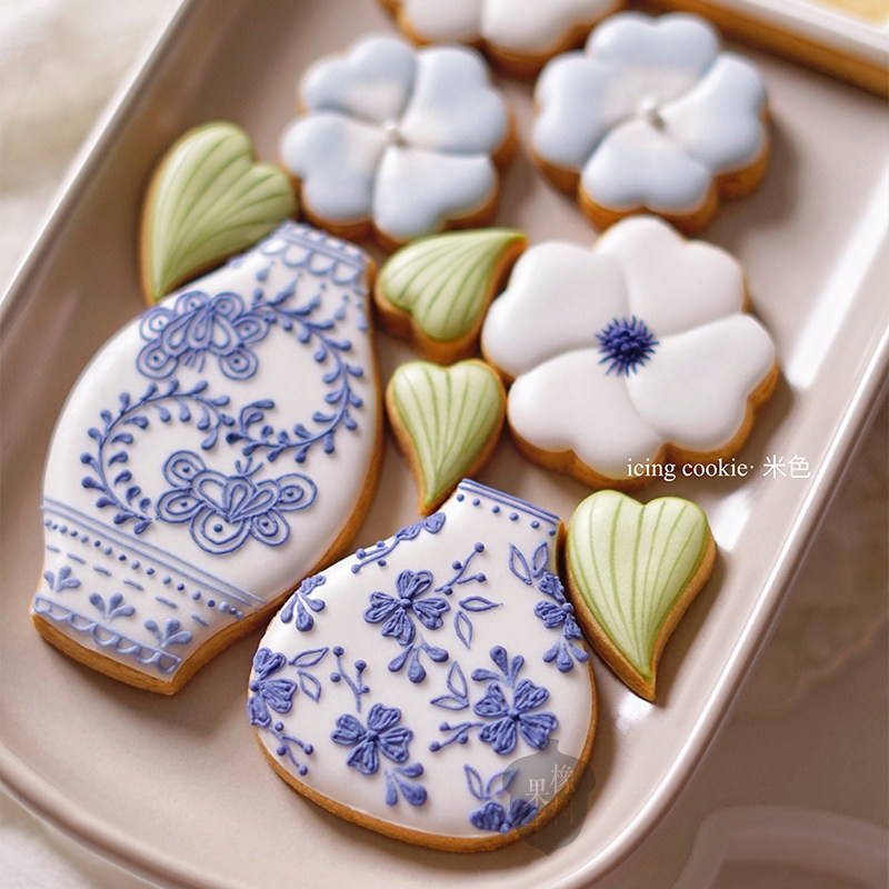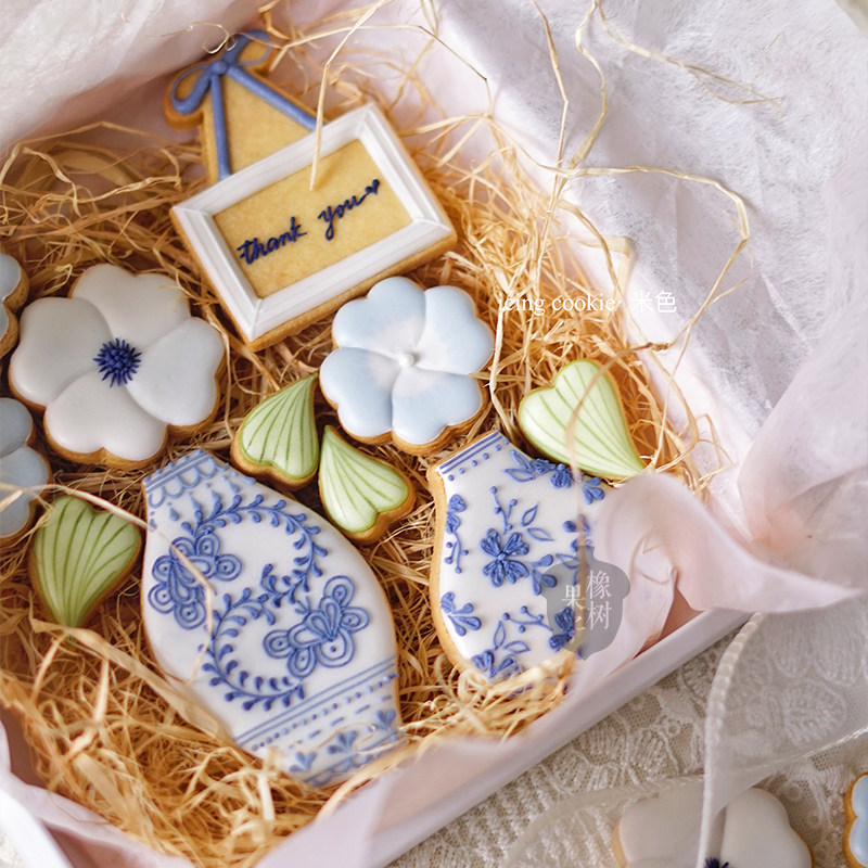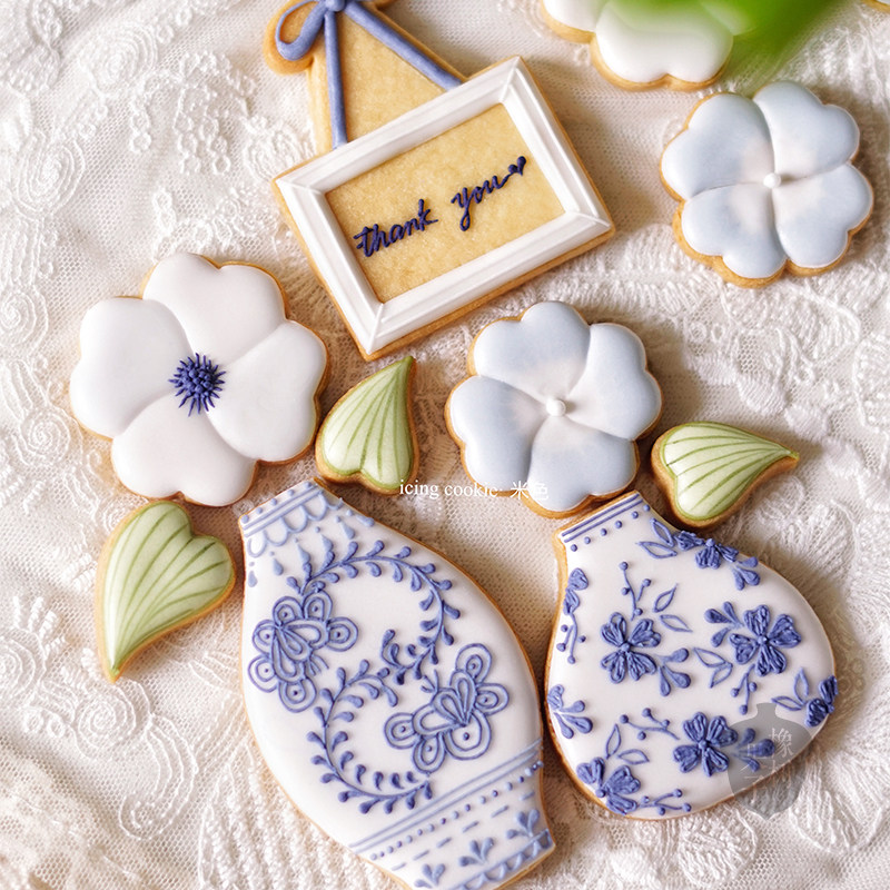 国风青花瓷教师节糖霜饼干模具 月见草花瓶祝福相框母亲节礼物diy