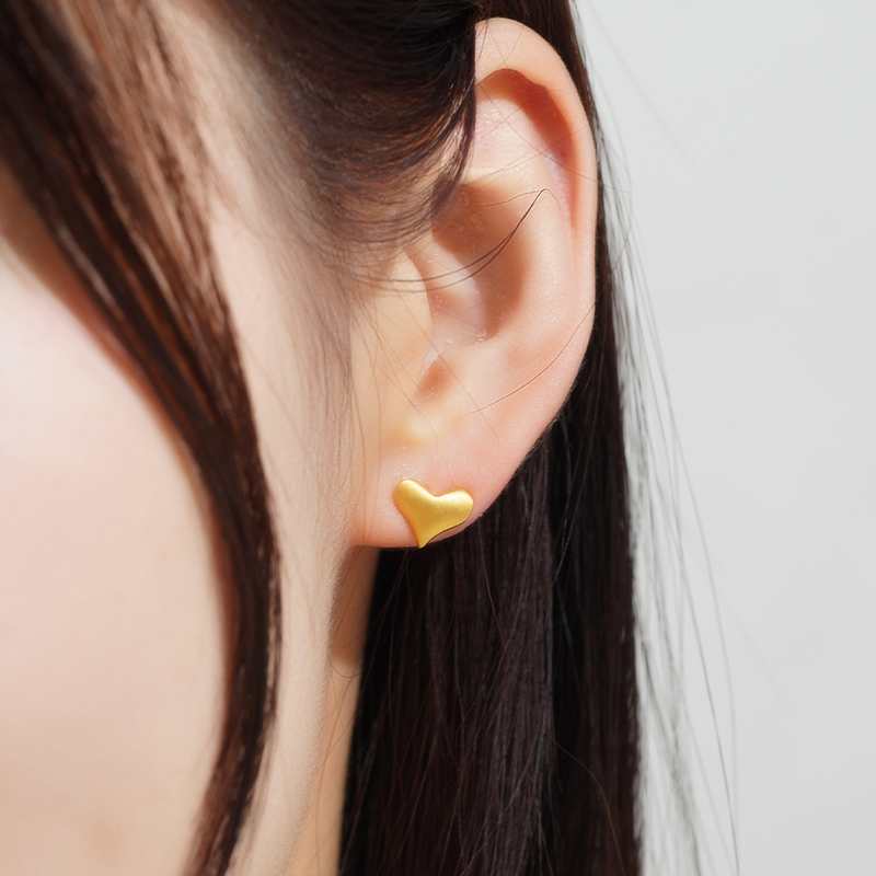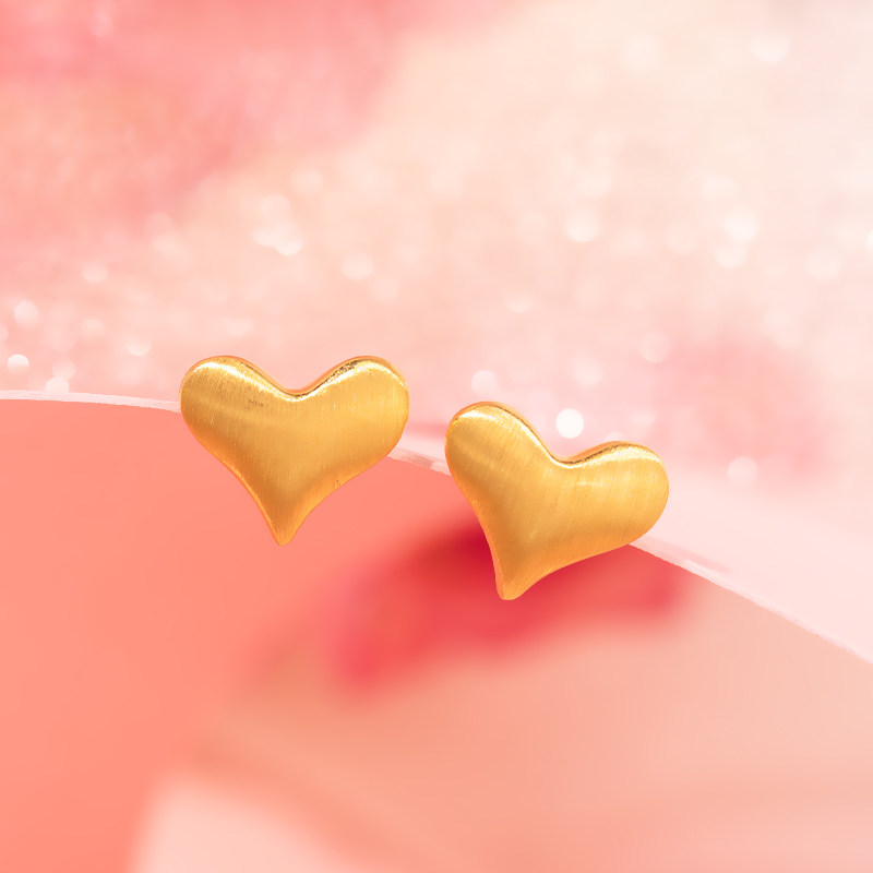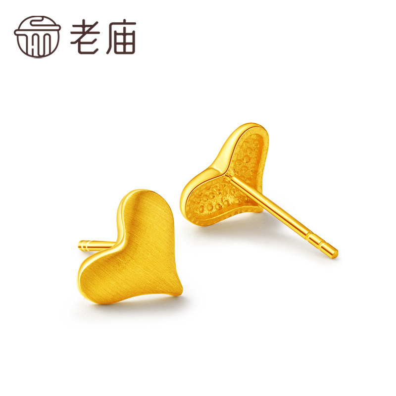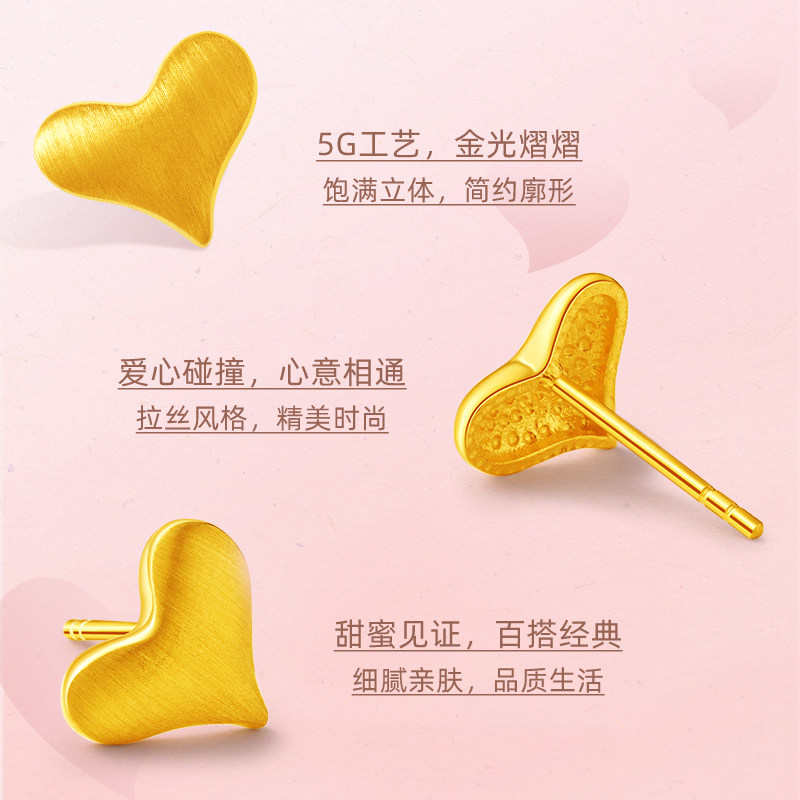 老庙黄金足金999示爱耳钉耳环5G曲面拉丝爱心甜蜜送女友礼物