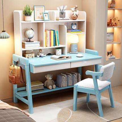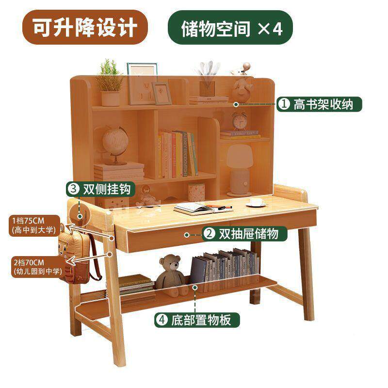 实528房木儿童习桌学家用书成套家具带书架一体升降桌学生房书间
