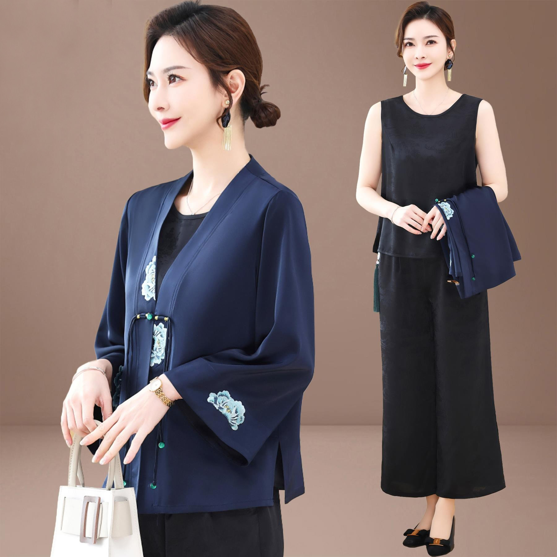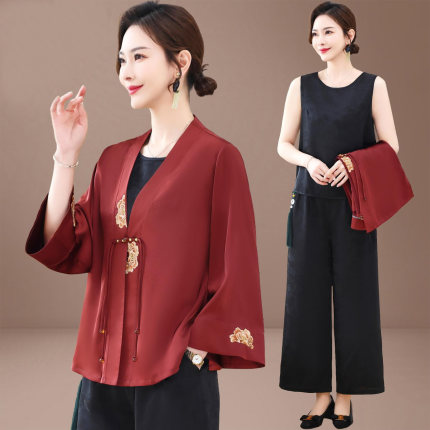 新中式喜婆婆婚宴装套装新款结婚礼服平时可穿妈妈春秋国风三件套