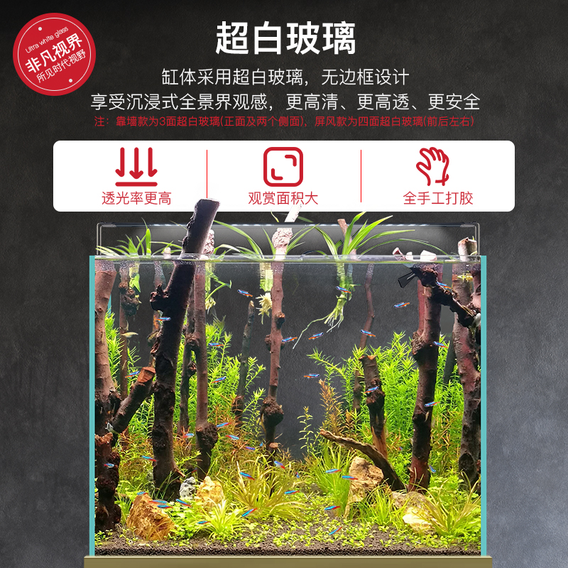 索一鱼缸客厅小型中型兰寿造景水草布景超白落地轻奢生态2023新款