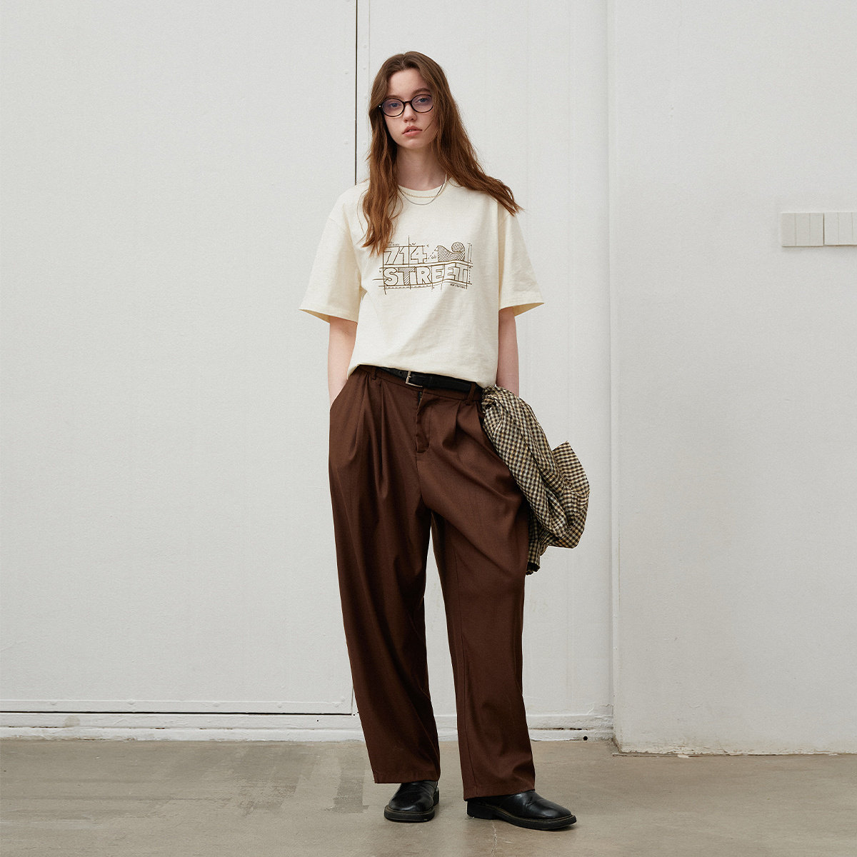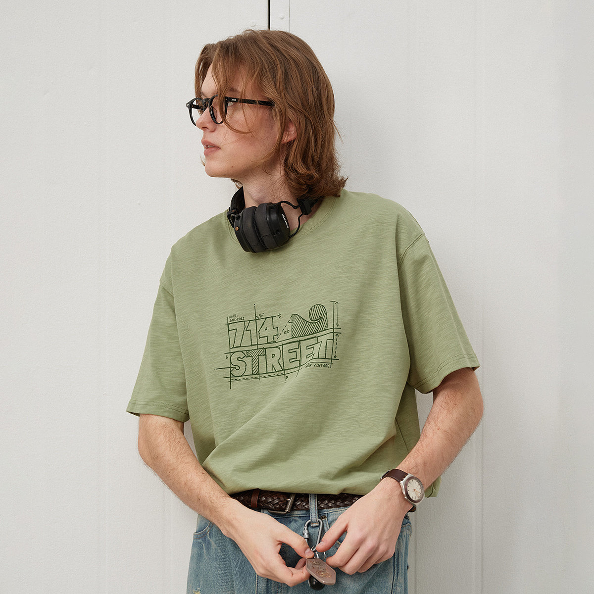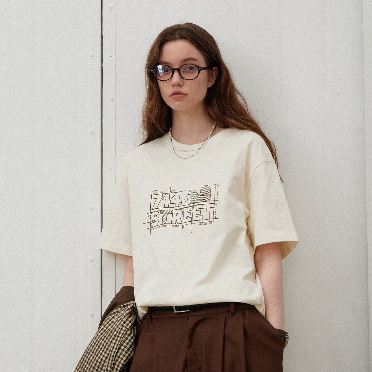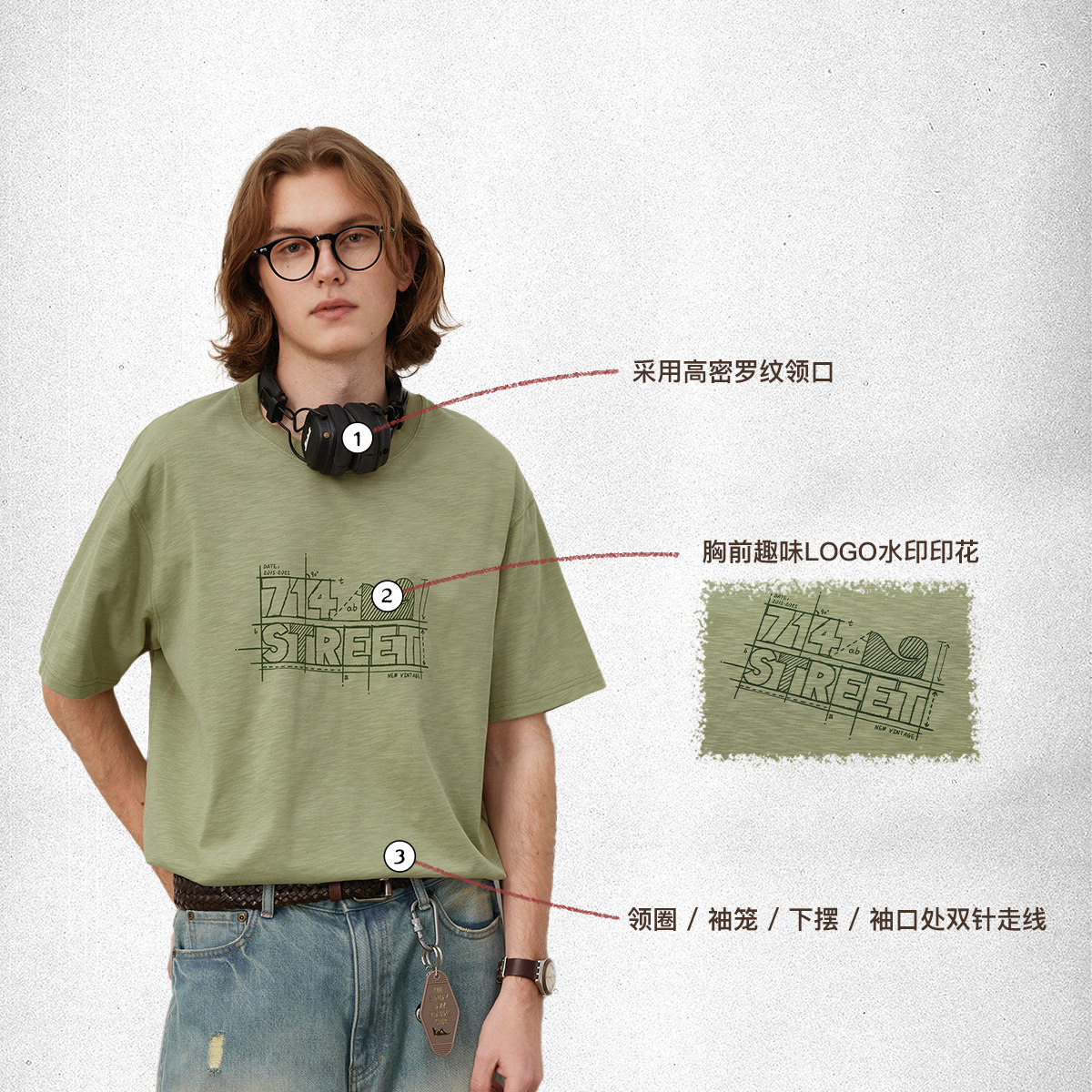 714street几何LOGO印花竹节纹理纯棉短袖T恤男女夏季情侣半袖上衣