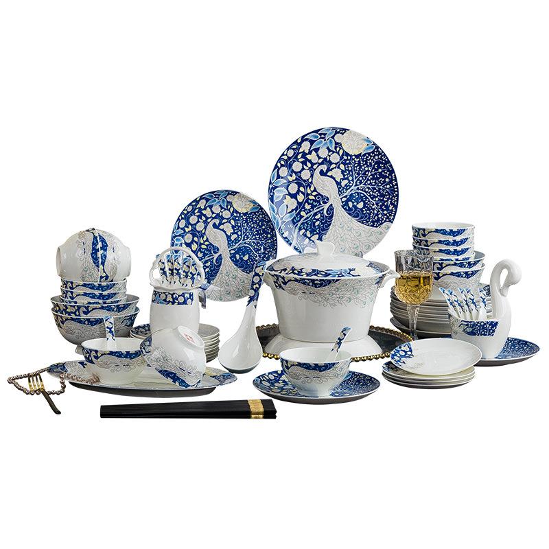 景德镇北欧陶瓷餐具套装家用碗碟碗筷骨瓷碗具酒店汤煲礼盒碗碟