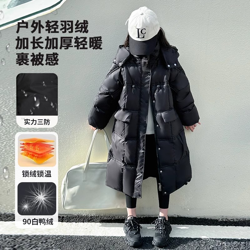 女童羽绒服冬装2025新款女大童过膝长款轻薄儿童冬季女孩加厚外套
