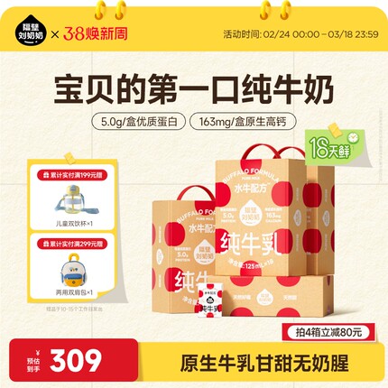 隔壁刘奶奶4.0蛋白水牛配方mini奶125ml*18盒*4箱高钙营养牛奶