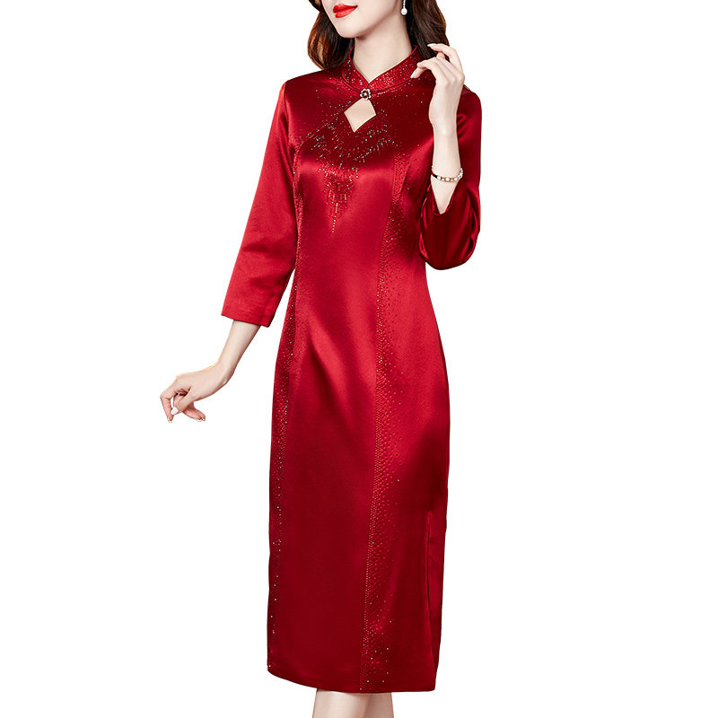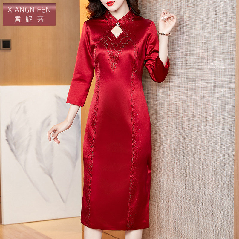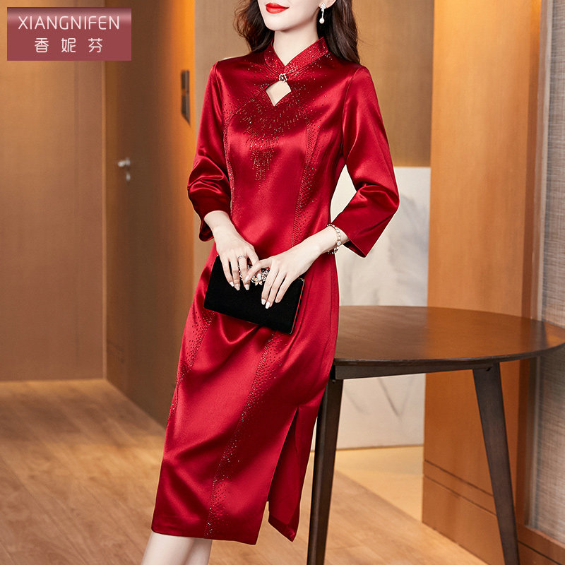 香妮芬高端精致重工钉珠妈妈婚宴礼服连衣裙2026春季新款改良旗袍