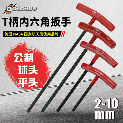 美国BONDHUS波顿进口T型公制内六角扳手球头平头单支6寸9寸14寸