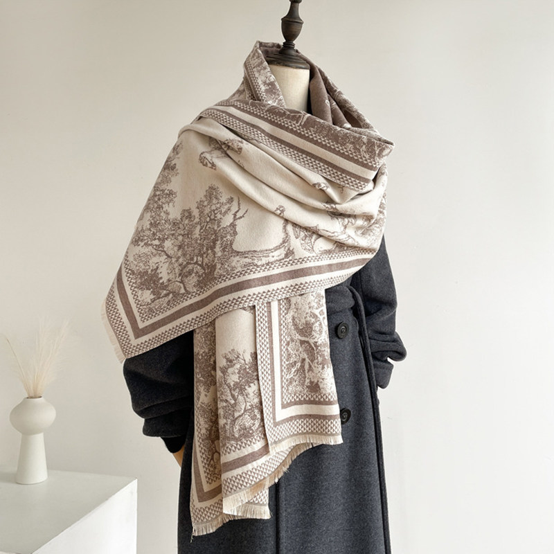 RD秋冬民族风骆驼围巾仿羊绒保暖披肩女百搭两用高级感办公室毛毯