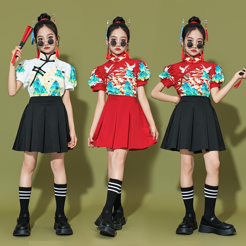 六一儿童演出服中国风潮流合唱团舞台服男童女童百褶裙新中式舞蹈