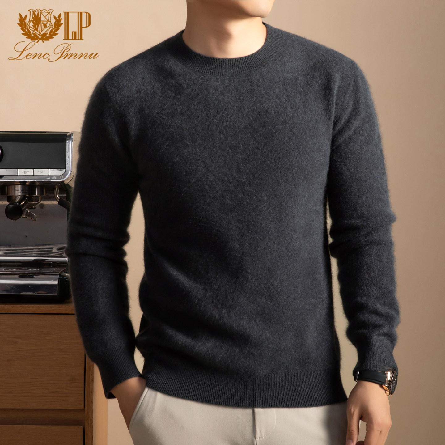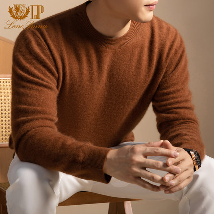 LP正品鄂尔多斯市产100%山羊绒衫男士圆领长袖厚冬季羊绒针织毛衣