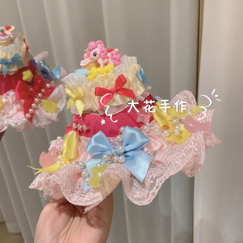 大花手作原创小马碧琪彩虹色洛丽塔发饰发夹假发话筒项链