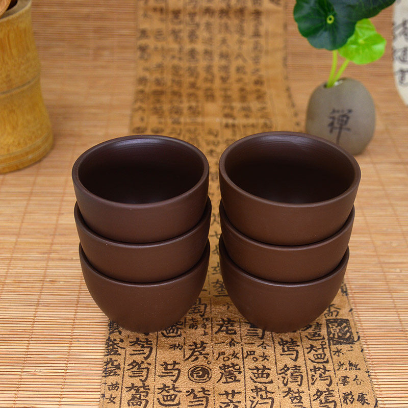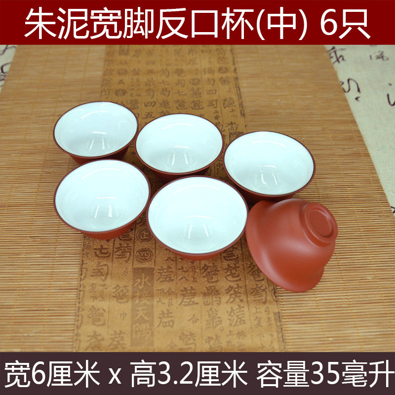 潮汕功夫小茶杯朱泥紫砂杯手拉杯子内白反口杯可养不开裂小号防烫