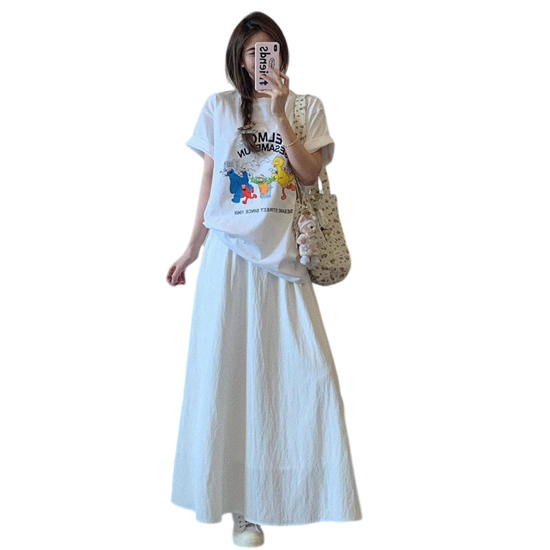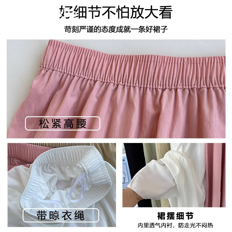 拉夏贝尔白色山本半身裙女夏季新款高腰a字中长款伞裙子显瘦长裙