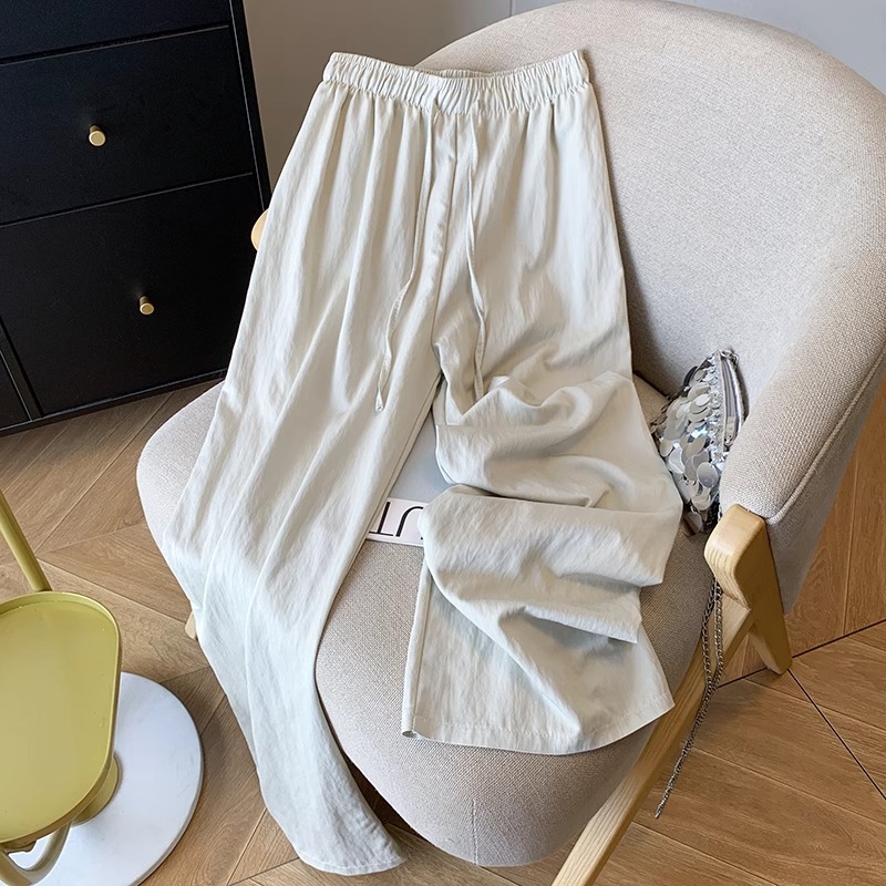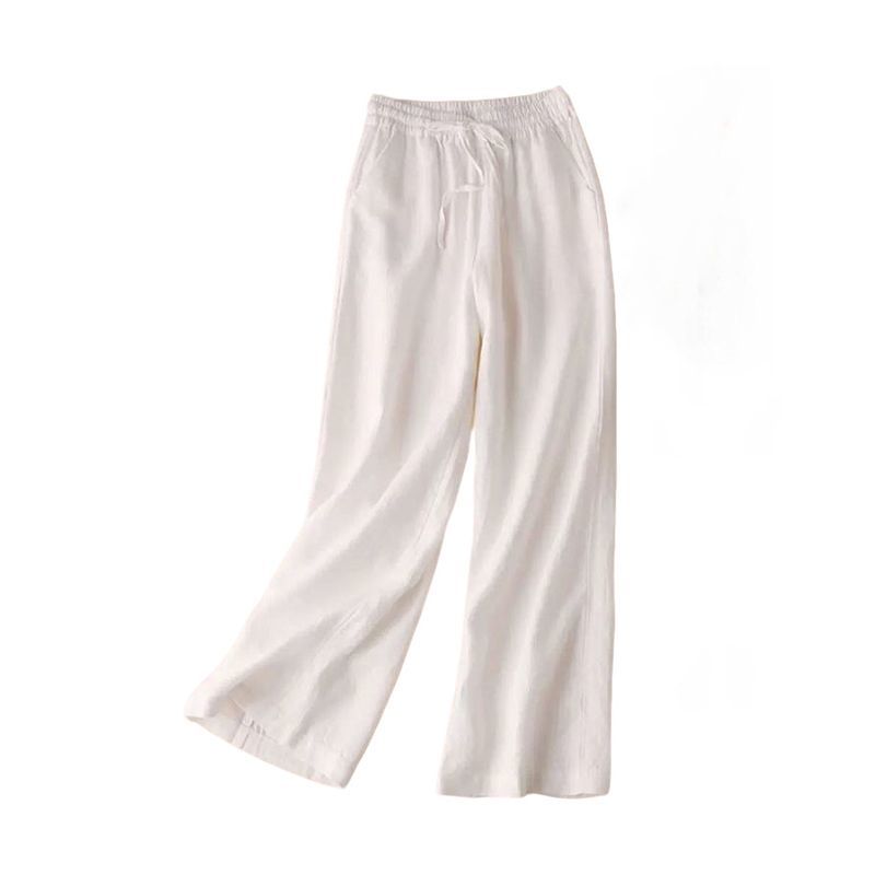 2025年爆款棉麻长裤女大码宽松紧腰纯色薄款亚麻阔腿裤~清仓外贸