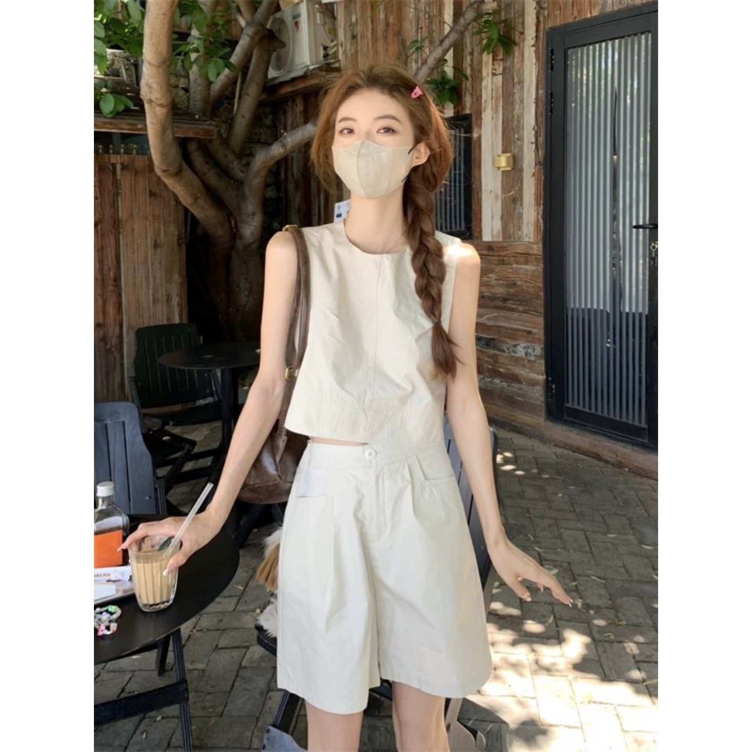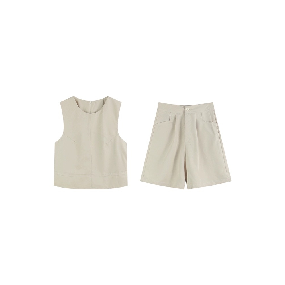 夏装搭配一整套装女款大码胖mm无袖上衣阔腿短裤子时尚减龄两件套