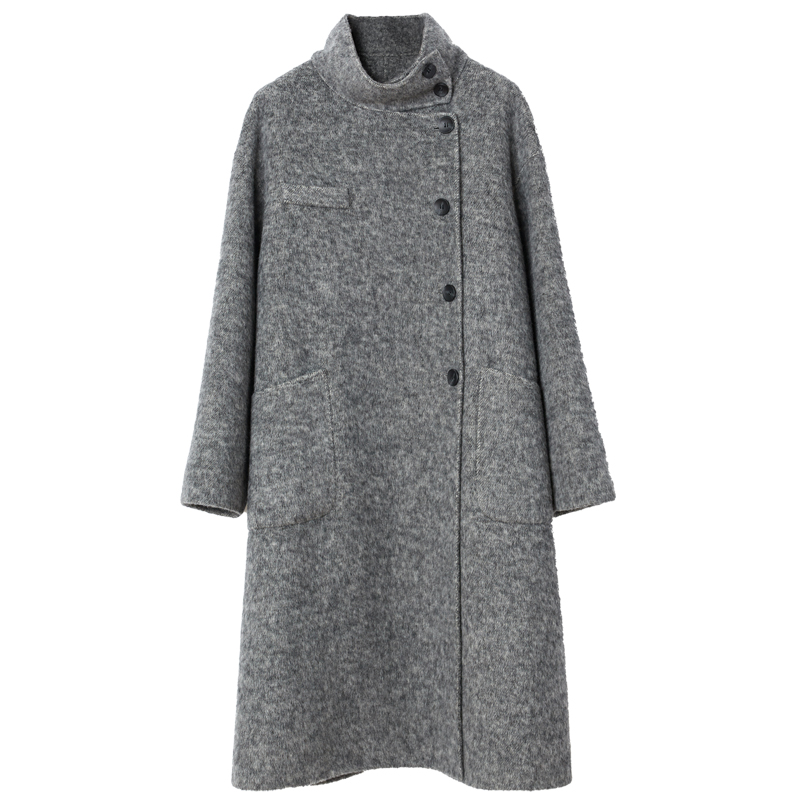 羊毛双面长款宽松单排扣立领大衣