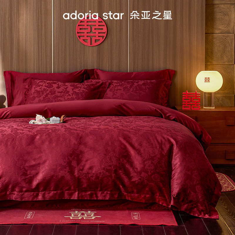 朵亚之星结婚床上四件套新婚庆嫁100纯棉全棉红色轻奢送礼盒床品