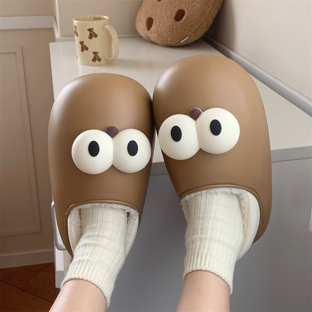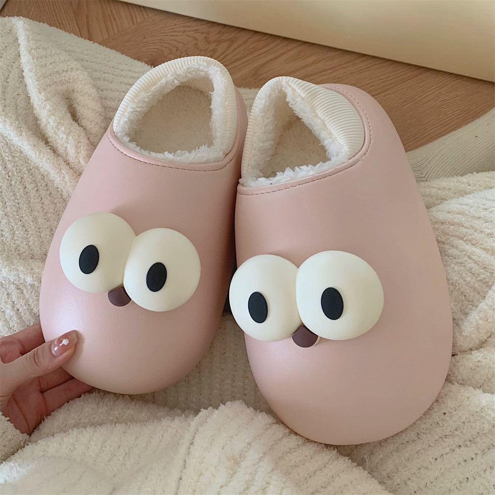 细细条 全包跟男女防滑保暖家居鞋冬季搞怪大眼睛防水情侣棉拖鞋