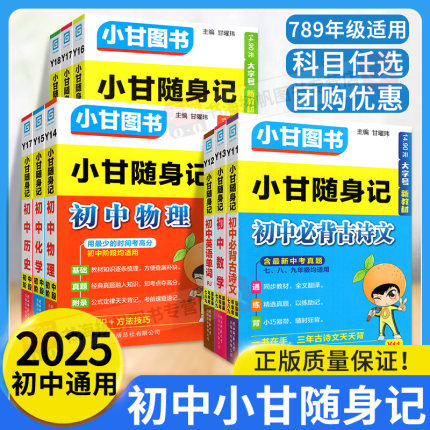 2025版小甘随身记初中必背古诗文英语单词短语语法数学物理化学公式定律七八九年级小四门知识点速记初一 二三口袋工具书中学教辅