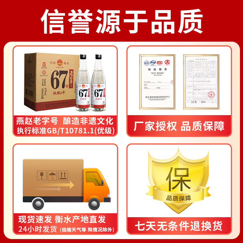 衡水酒67/60/72度老白干高度白酒纯粮食酒官方高粱酒整箱6瓶特价
