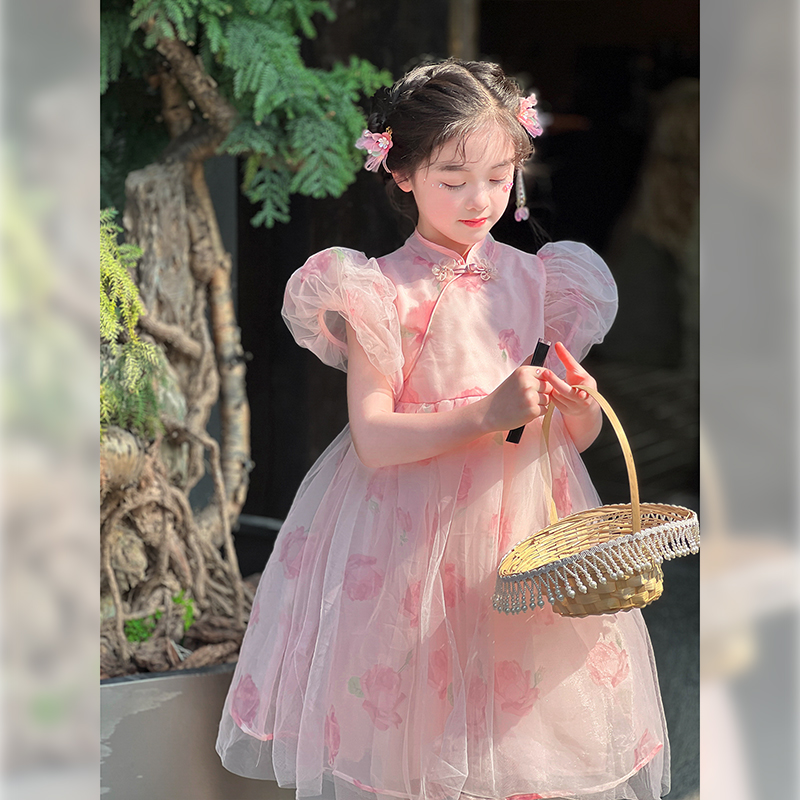 女童连衣裙2024春夏季新款儿童裙子洋气印花长裙宝宝礼服裙网纱裙