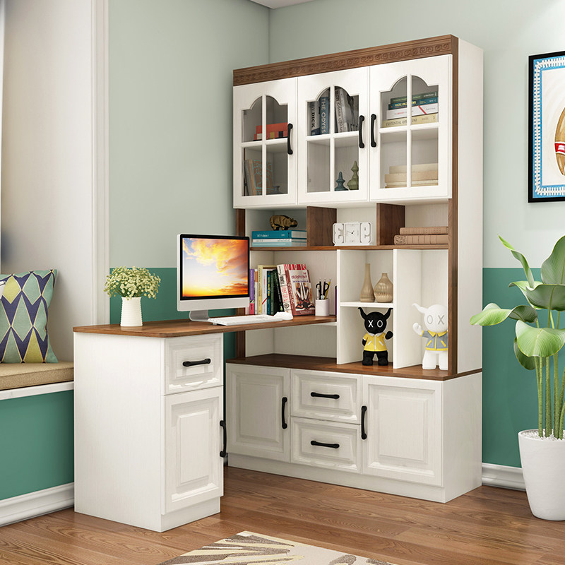 书房转角书柜书桌一体台式电脑桌书架儿童学习桌学生写字桌组合柜