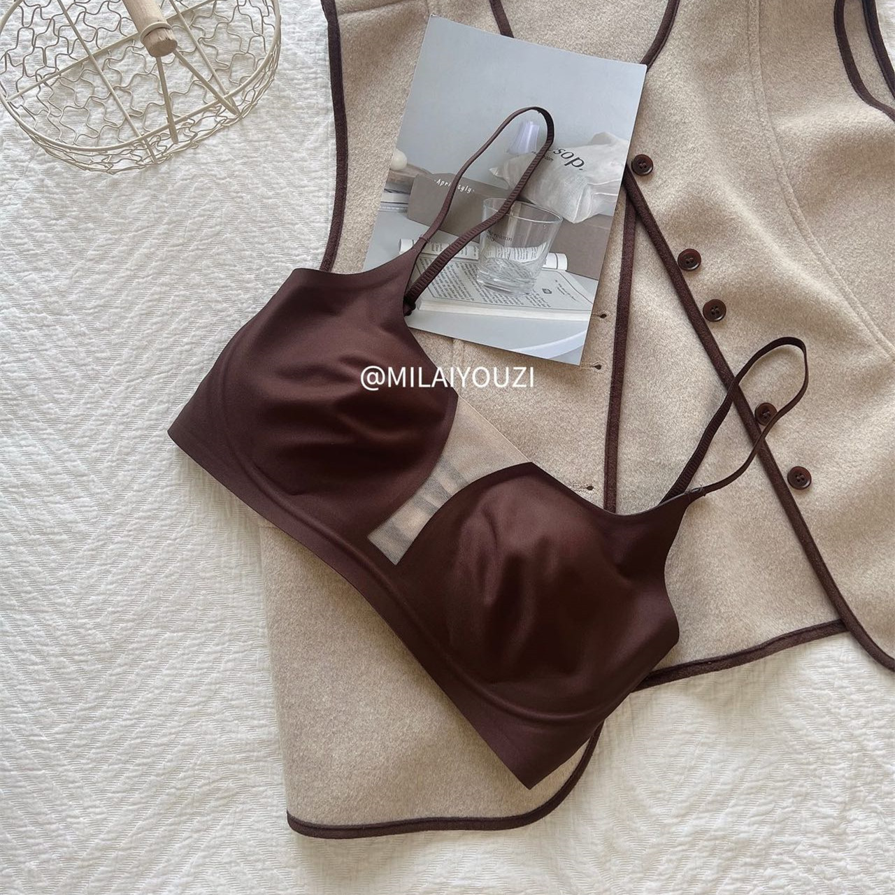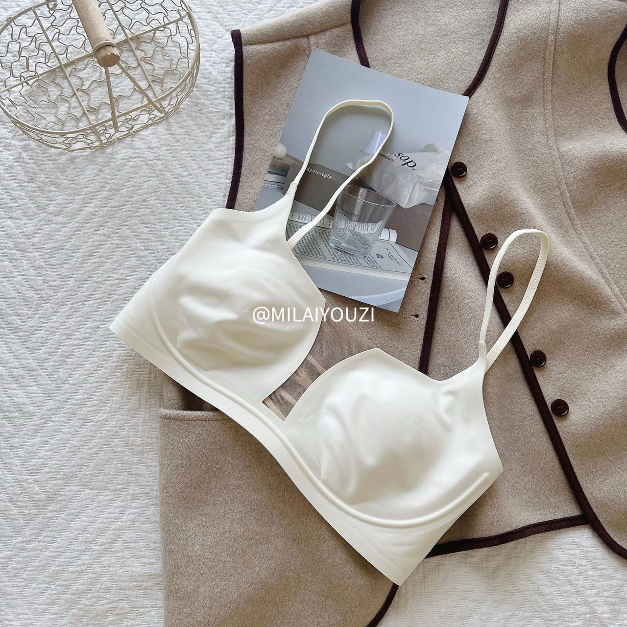 大胸显小内衣女超薄摩登镂空美背3505抹胸式聚拢性感文胸薄杯细带