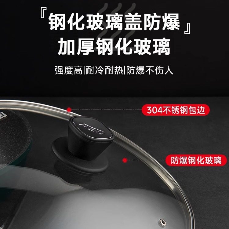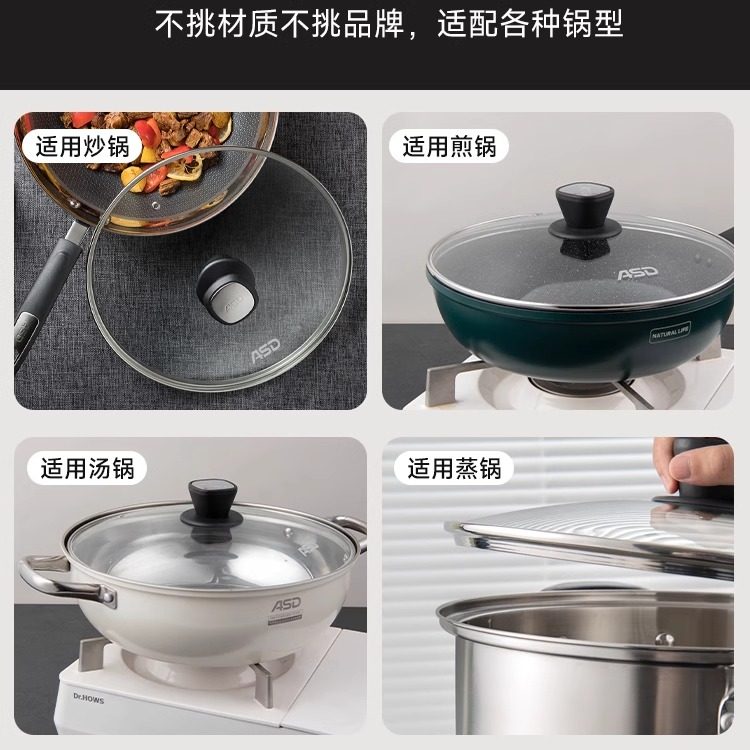 爱仕达通用锅盖家用钢化玻璃32cm炒锅30/28/26透明耐高温炒菜盖子