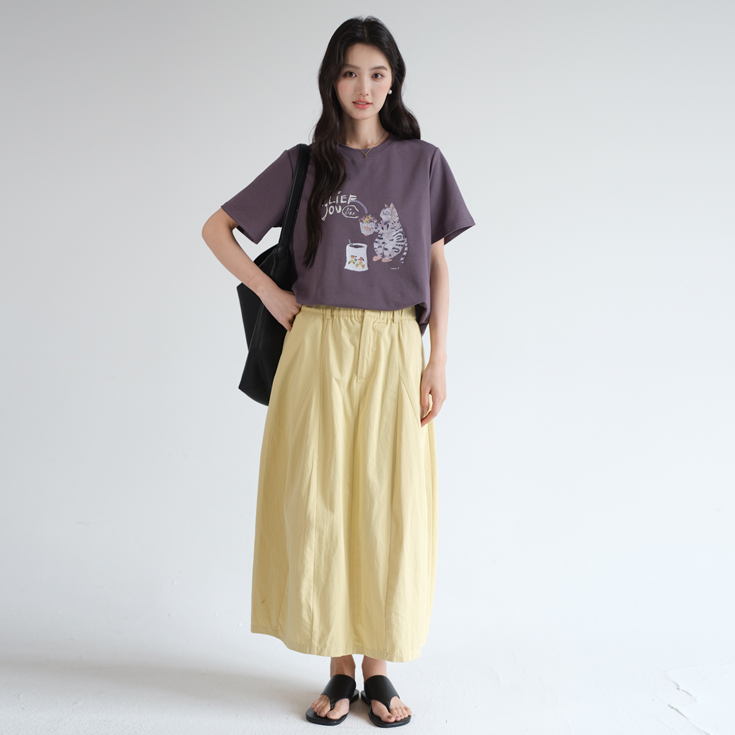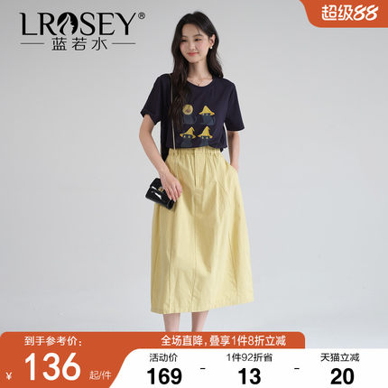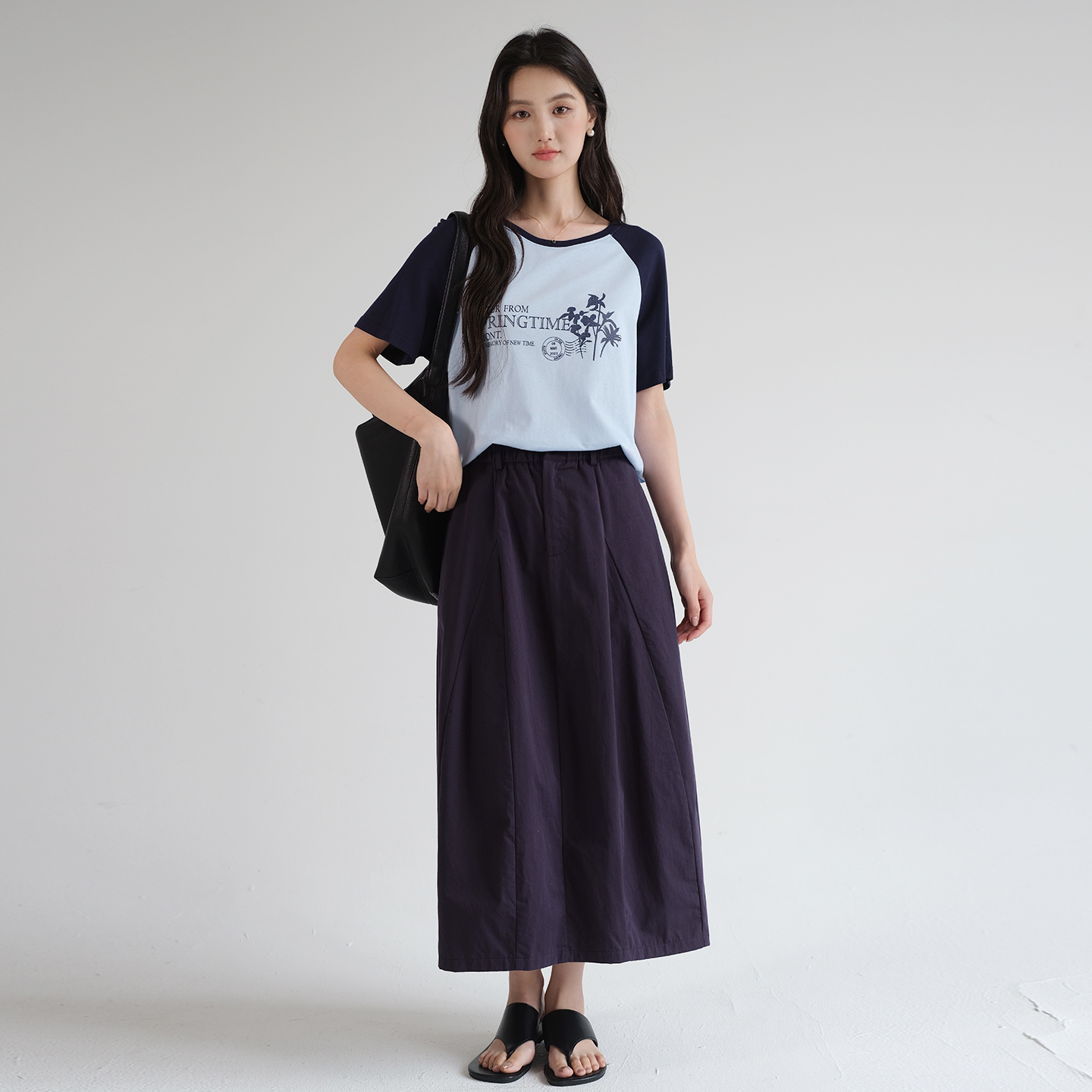 【全棉松紧腰A字半裙】蓝若水大码2025夏装新款日系小个子工装裙