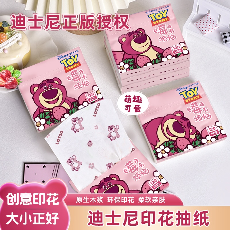 正版授权草莓熊迪士尼印花纸巾卫生纸小学生儿童上学小包便携