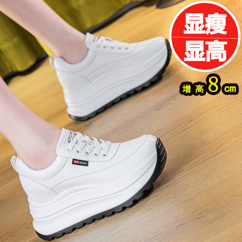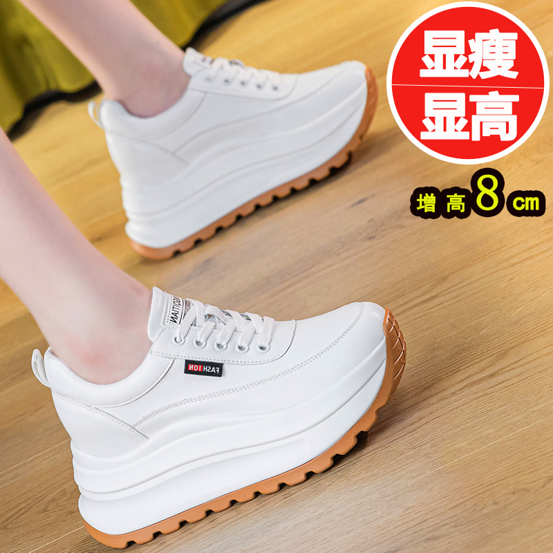 真皮防滑运动鞋女款2025新款女士厚底老爹鞋秋季内增高女鞋小白鞋