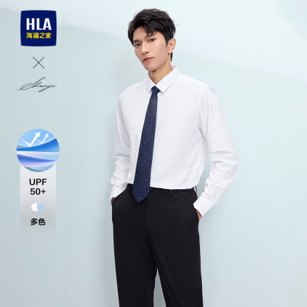HLA/海澜之家轻商务衫及系列长袖正装衬衫25秋季防晒白衬衣男士