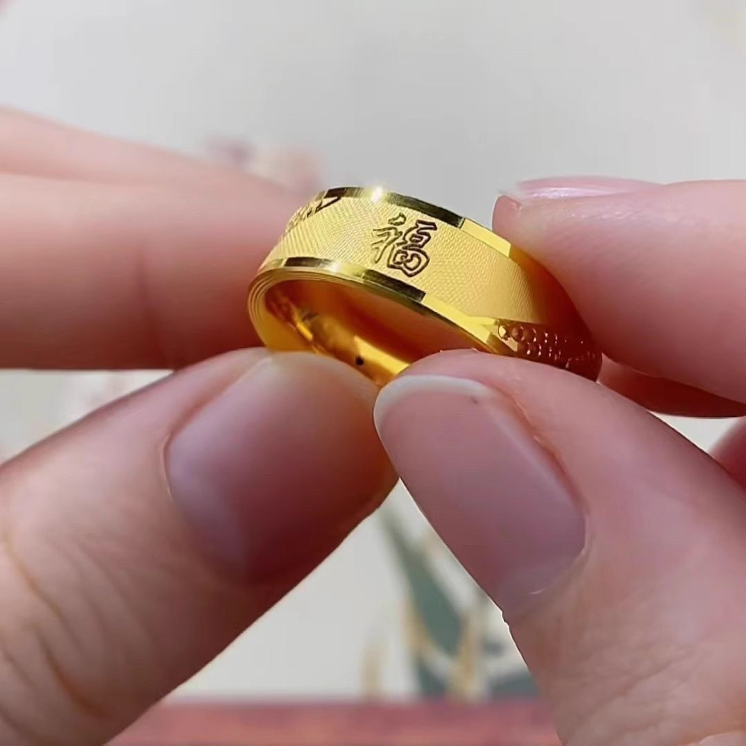 高级圈感钛钢字宽戒爸爸男女款素礼个性光面指环简约凌纹戒指送