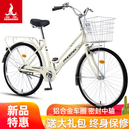 凤凰牌自行车女士轻便成人24寸26代步通勤车男式学生淑女复古单车