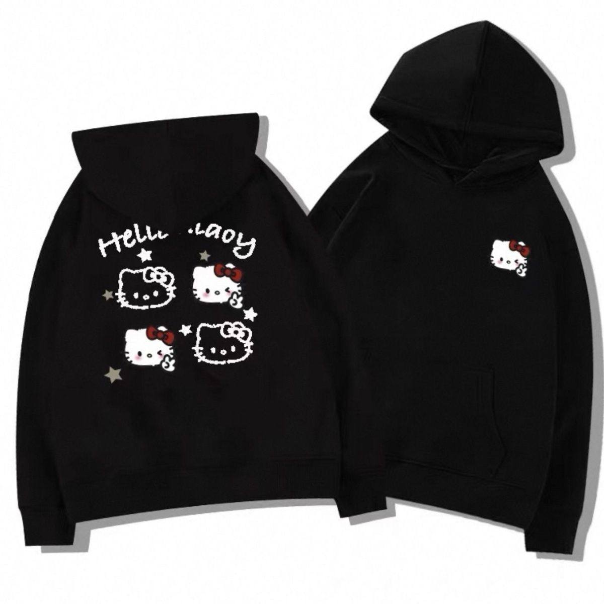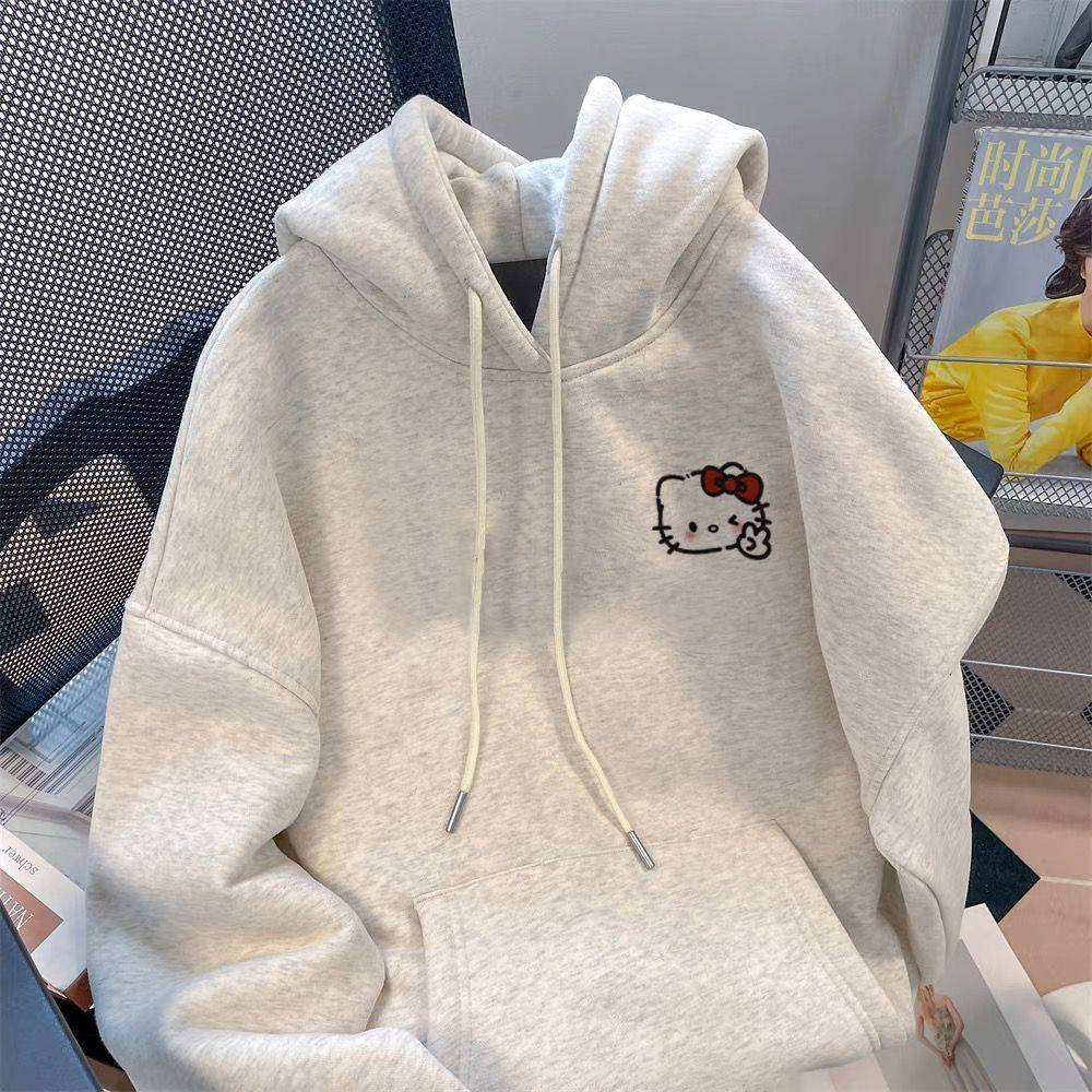 韩系学生漂亮HelloKitty卫衣男女童秋冬加绒可爱洋气慵懒连帽上衣