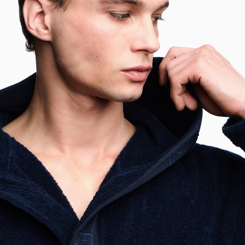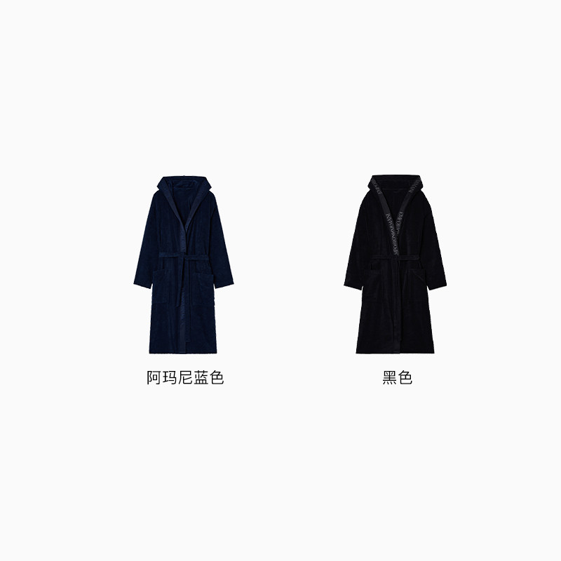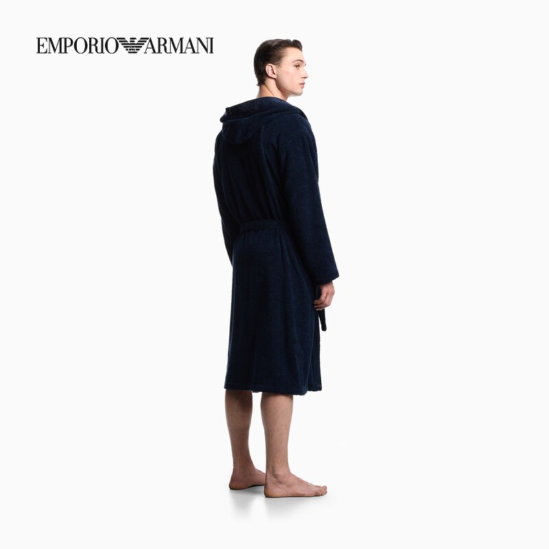 EMPORIO ARMANI/阿玛尼冬季新款男士纯棉连帽系带提花浴袍官方