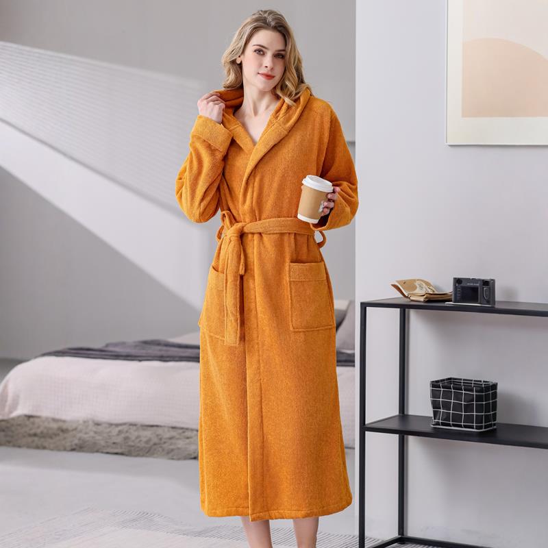 秋冬浴袍女士2025新款睡衣带帽加厚加长款睡袍1009c