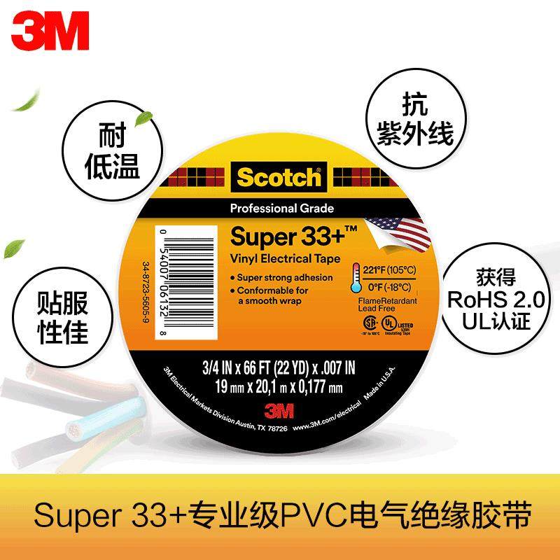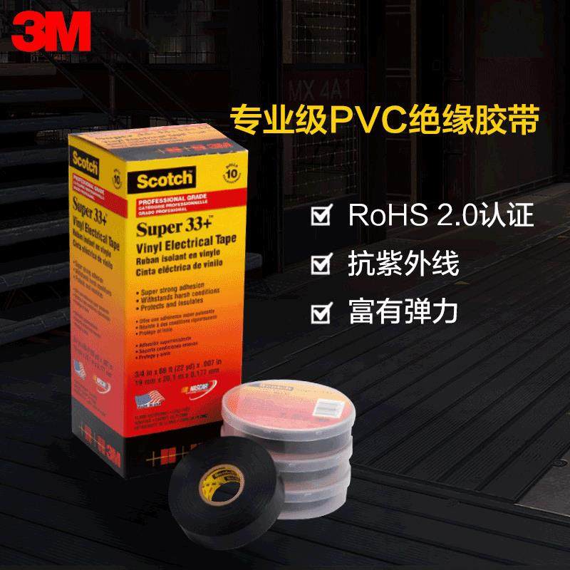 3M33+通用型pvc电气绝缘胶带 电工胶带汽车线束耐高压电胶布