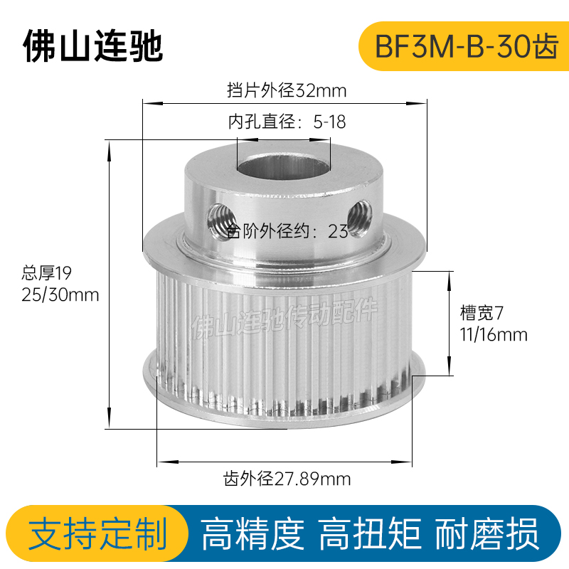 3M30齿槽宽7/11/16 BF型 两面平同步带轮30P3M100-B-P8 150皮带轮