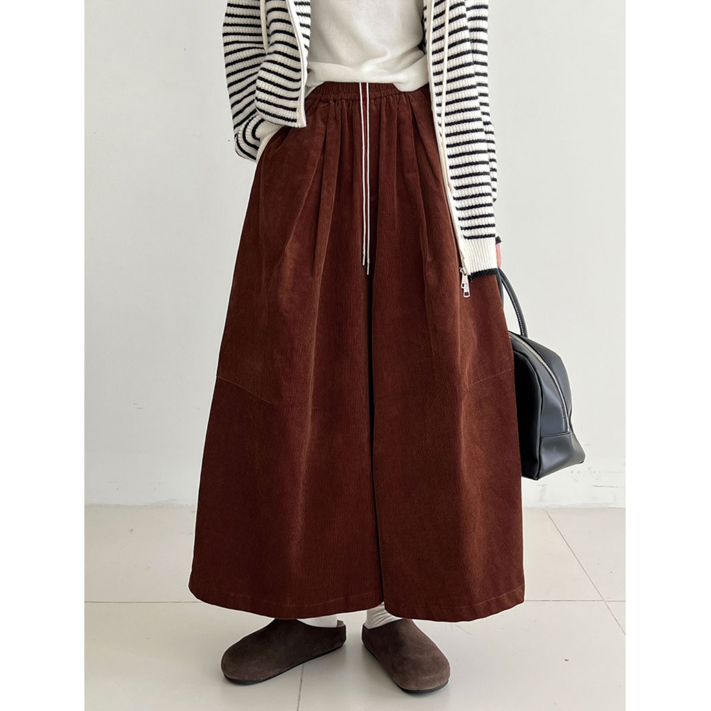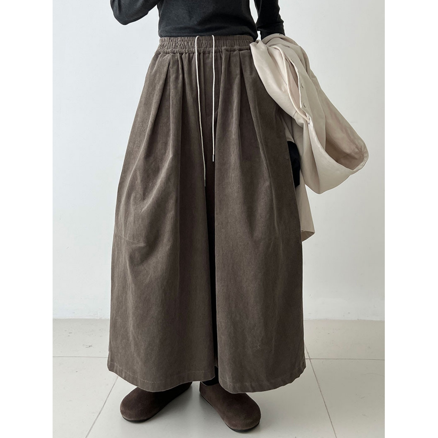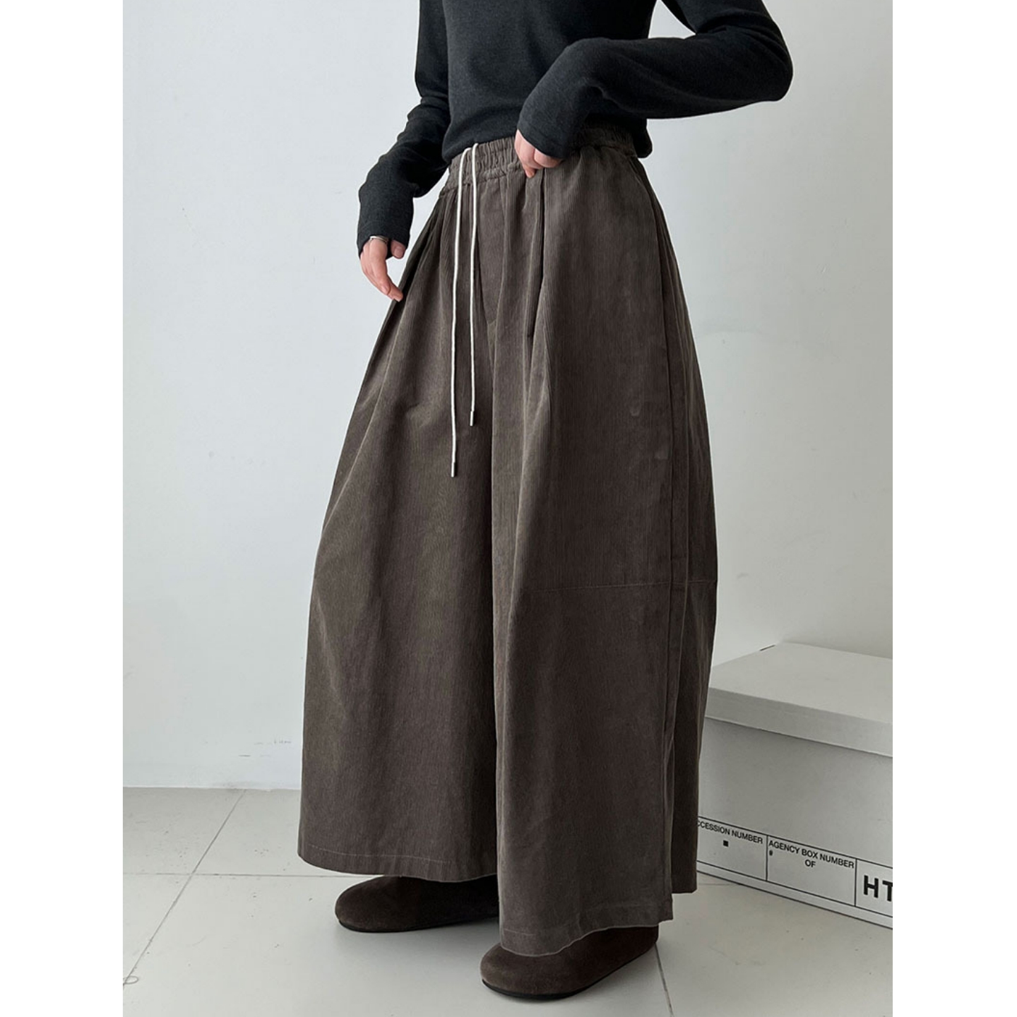 复古风弯刀裤灯芯绒阔腿裤女宽松