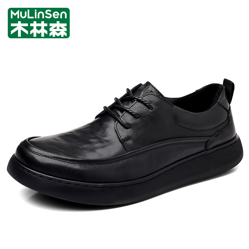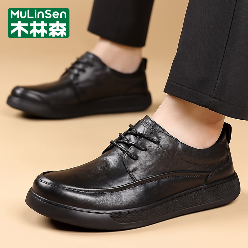 木林森皮鞋男春季2026新款头层牛皮商务休闲大头宽楦软底爸爸板鞋