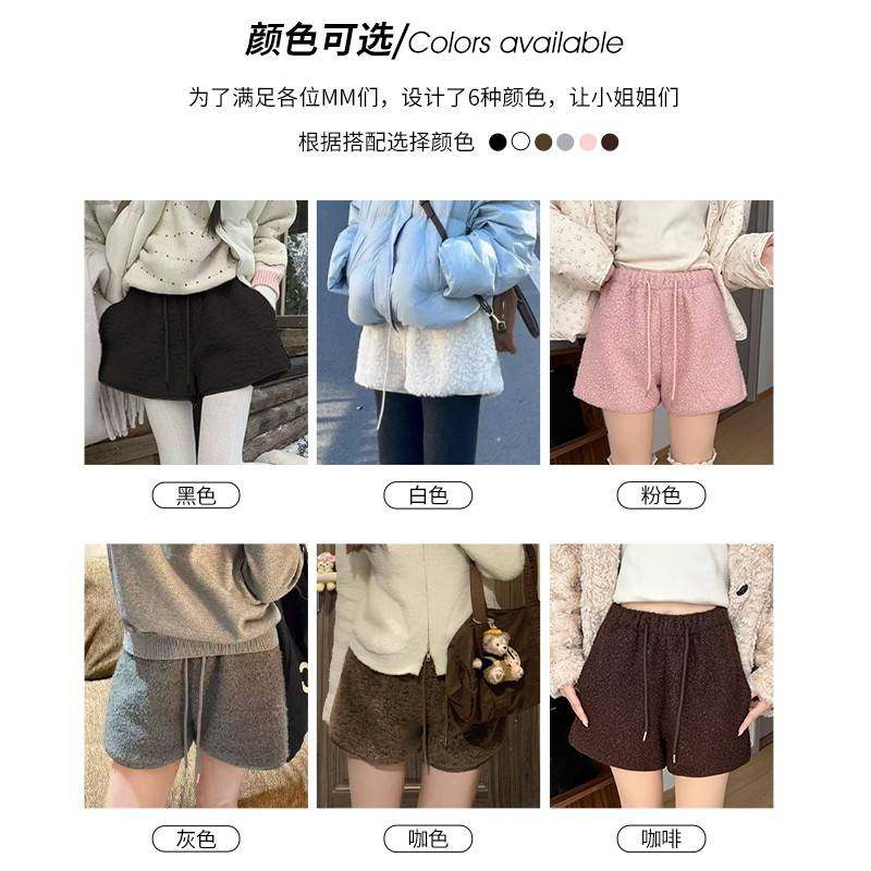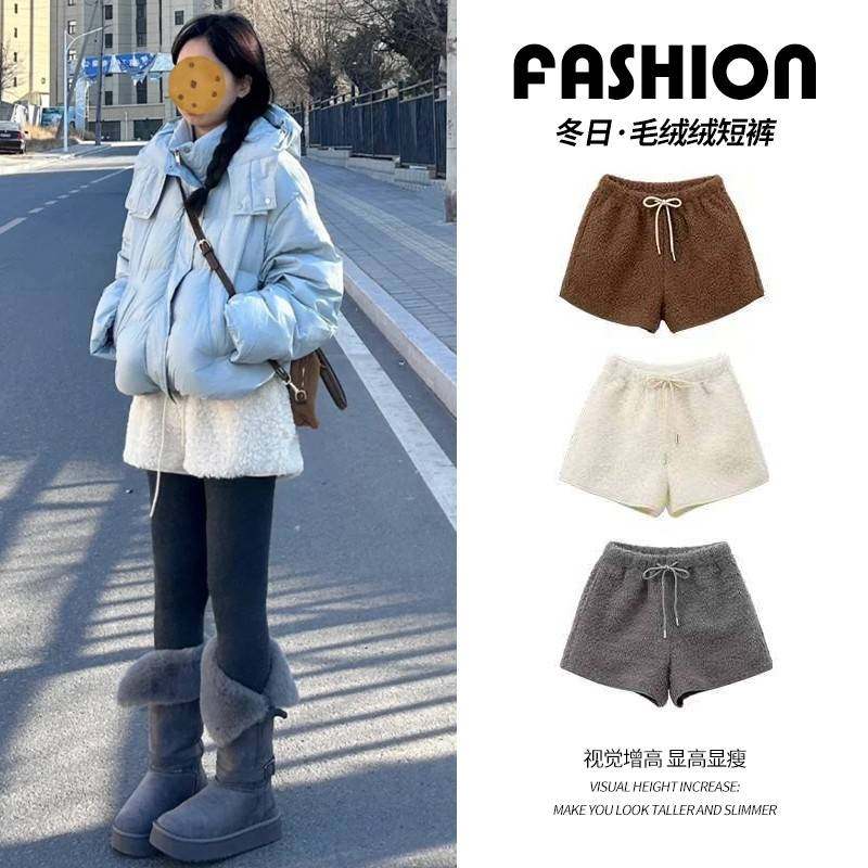 白色羊羔毛绒短裤女冬外穿2025新款高腰显瘦包臀裤小个子打底靴裤