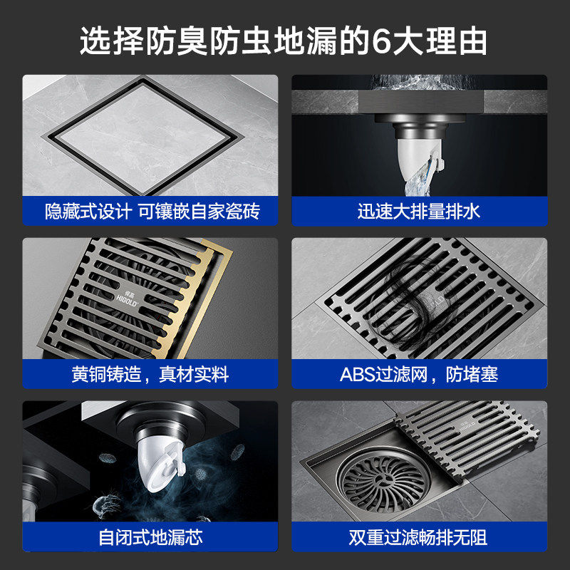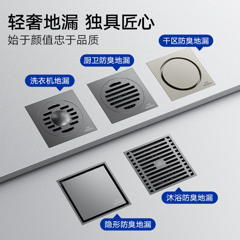 悍高铜地漏隐藏式地漏干区防臭地漏浴室淋浴房洗衣机下水堵头