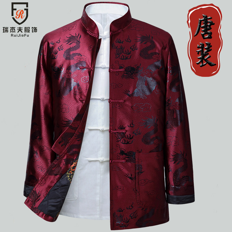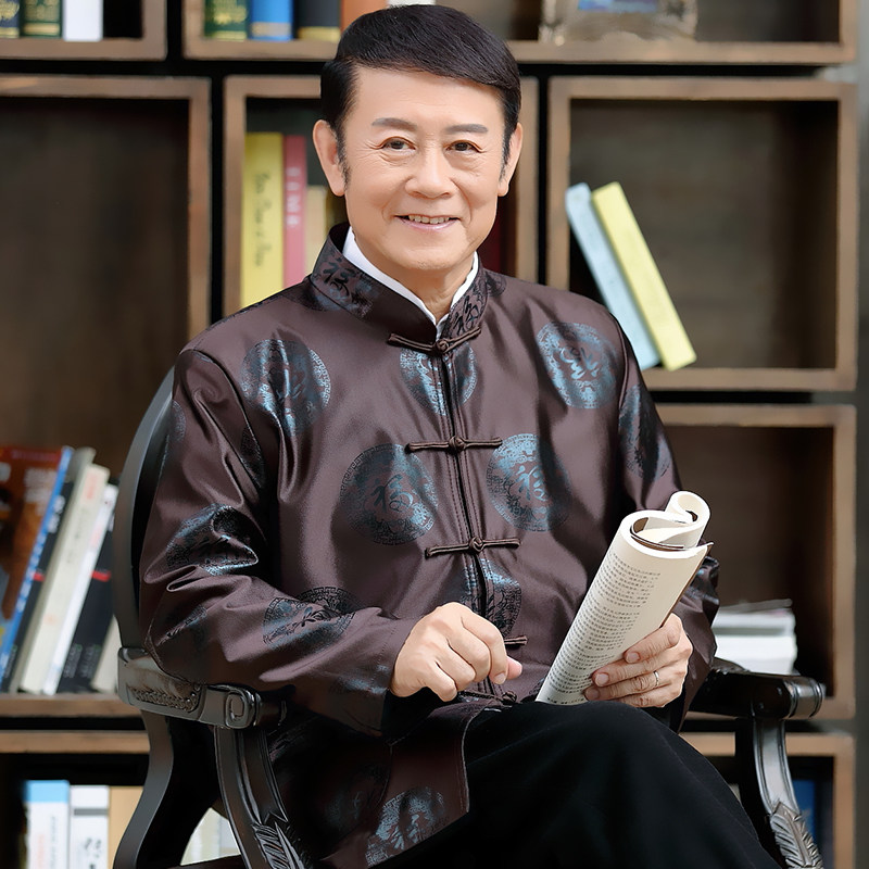 春秋唐装男士长袖外套中式礼服爸爸装中老年人生日宴上衣祝寿夹克