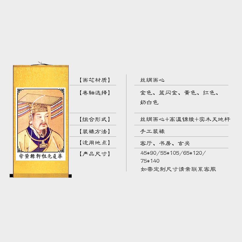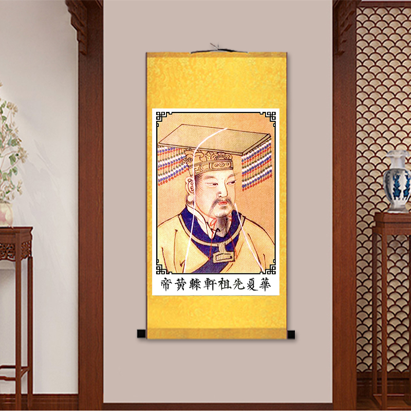 轩辕皇帝挂画 轩辕氏画像 人文初祖 中华文化装饰画 丝绸画卷轴画