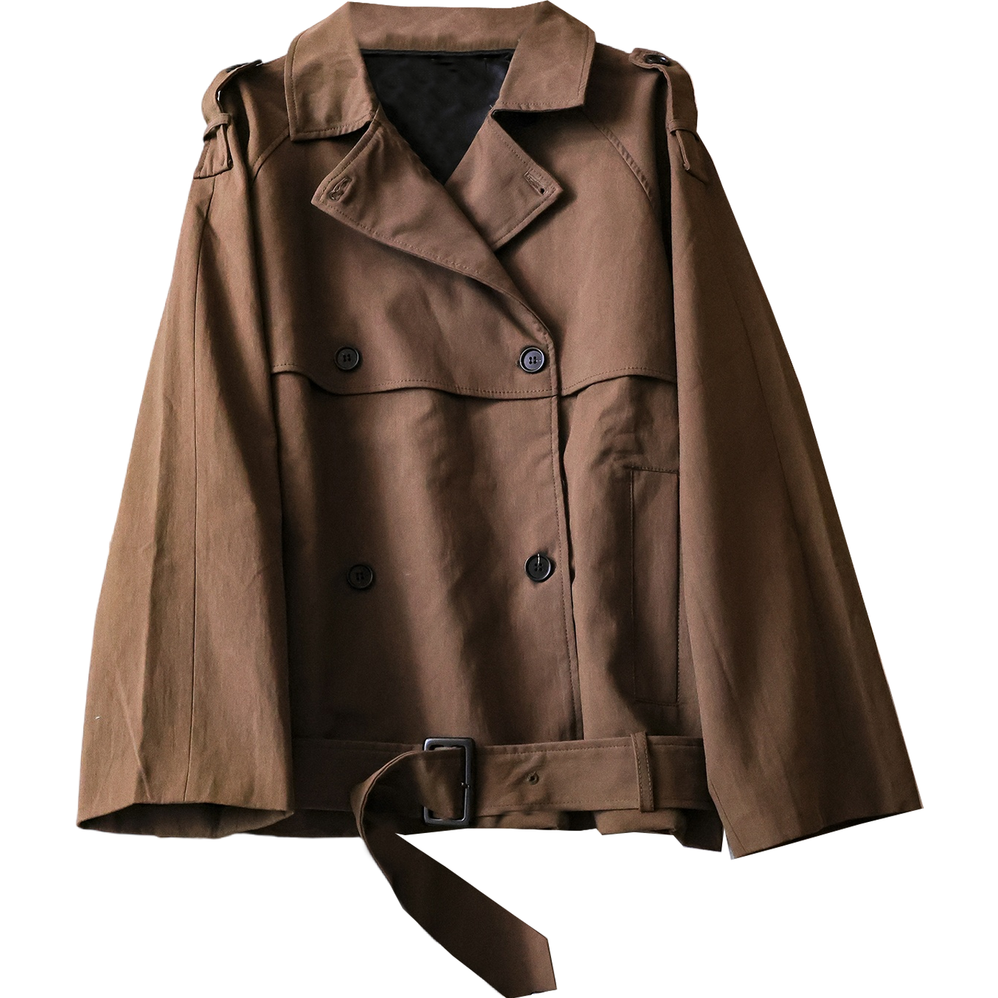 纯色酷飒风系腰带短款翻领外套2025秋冬新款长袖休闲女装风衣Q073